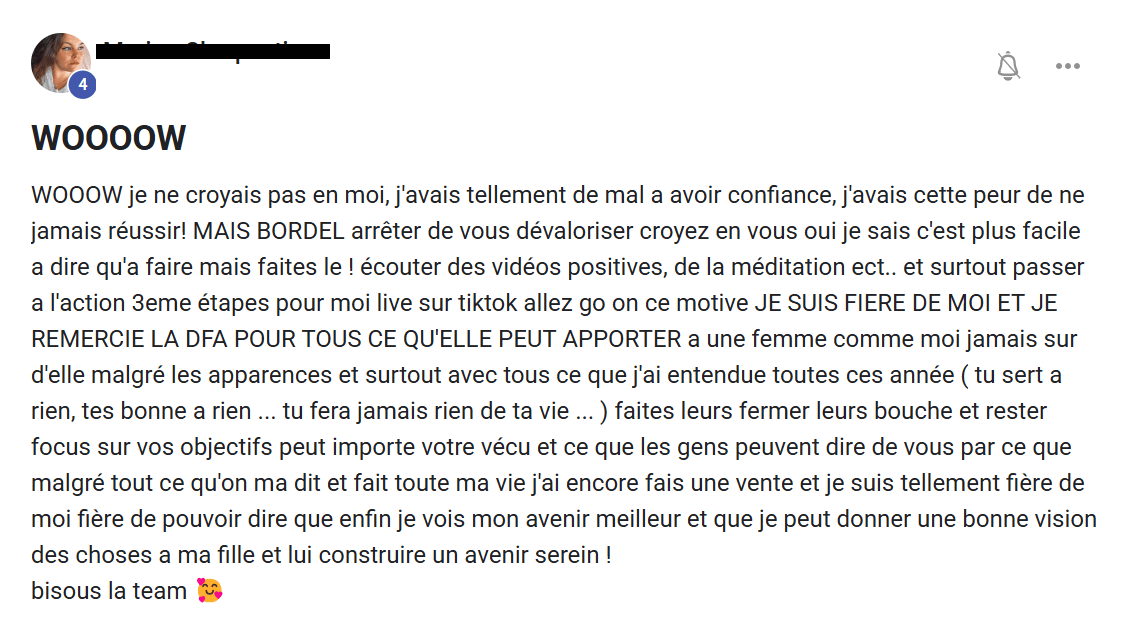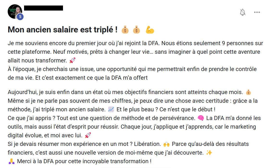 La DFA garantit une méthode qui a déjà fait ses preuves. Si tu appliques chaque étape du programme, tu auras toutes les clés en main pour réussir.